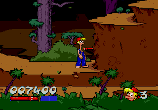 Bubba’n Stix est un jeu créé à la base sur Amiga. Nous sommes ici devant son portage sur Megadrive. Bubba’n Stix, même si je connais son existence, n’est pas un jeu auquel j’ai joué étant plus jeune. Je le découvre donc aujourd’hui, grâce à la magie du rétrogaming. Et bien croyez moi si vous le voulez, mais j’aime bien ce jeu. Vous dirigez un petit blondinet armé d’un espèce de bâton magique avec des yeux et vous devez finir les différents niveaux. Jusque là, on peut dire que c’est du classique. J’avance donc dans ce premier niveau qui s’avère être une forêt étrange dont les arbres ont des yeux et dont les buissons vous sautent à la gorge. Et là, au fur et à mesure que je progresse dans cette forêt, je comprends pourquoi la phrase « a strategy adventure » se trouve sur la jaquette du jeu. En effet, le jeu n’est pas dénué de