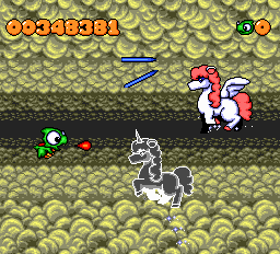 on se demande ce qu’il faut éviter et ce qu’il faut ramasser. Pour conclure, Coryoon est un très bon petit shoot, pas trop dur et avec un côté cartoon assez marrant. A essayer sur émulateur, la version originale étant relativement chère.