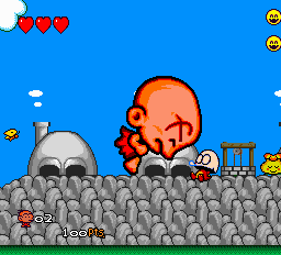 Pc Kid c’est le Mario de la PC Engine et le voilà qui revient dans ce troisième volet. Je préfère vous prévenir de suite, si vous avez une PC Engine et que vous aimez les jeux de plate-forme il vous faut les PC Kid. Ce troisième volet, même s’il n’est pas très original par rapport aux deux précédentes versions, reste un jeu extra et surtout rempli d’humour. Notre héros distribue toujours autant de coups de boule et utilise sa tête pour tout faire. Les niveaux sont assez variés, même s’ils font beaucoup penser à PC Kid 2. Les bonus sont toujours présents et on voit même l’apparition de petits bonbons qui modifient la taille du Kid, permettant à ce dernier d’accéder à certaines parties des niveaux. Bref, si