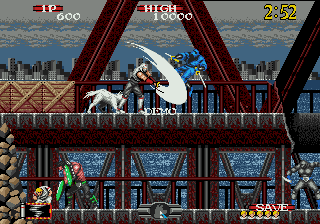 Shadow Dancer: the Secret of Shinobi fait partie de la série des Shinobi sur Megadrive. C’est un jeu de plate-forme action dans lequel on dirige une fois de plus le célèbre ninja, mais cette fois il a un chien avec lui. Le but du jeu est de finir les niveaux et de combattre l’organisation criminelle du lézard. Le jeu se déroule principalement dans des décors urbains, souvent on passe d’un plan à un autre à l’aide d’un super saut. L’action est soutenue tout au long du jeu et l’utilisation de votre compagnon à quatre pâtes ajoute un plus au gameplay du jeu. Si vous êtes fans de jeu d’action et de shinobi, n’hésitez pas une seconde ce Shadow Dancer est génial.