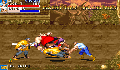 Dans les années 90 Capcom a sorti plusieurs Beat’em all de qualité, comme: the Punisher, Captain Commando, Alien vs Predator ou encore Cadillacs and Dinosaurs ici présent. Cadillacs and Dinosaurs est à la base un comic qui sera adapté en dessin animé (j’adore) puis en jeux vidéo (j’adore aussi). Dans ce jeu d’Arcade vous pouvez diriger quatre personnages et jouer à trois simultanément. La mise en scène est superbe, les niveaux (huit seulement, dommage) sont variés, les graphismes style comic magnifiques et la prise en main immédiate. Bref du beat’em all pur avec des armes à gogo, des steaks dans les bidons, des « tak,tak,tak » et autres « boom » de partout, des cris… Tout simplement mon beat’em all préféré sur Arcade. Foncez vous procurer ce jeu.