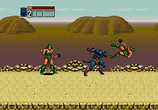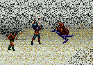Golden Axe 3 est le troisième volet de la série du même nom. Il s’agit d’un Beat’em all se déroulant dans un monde médiéval fantastique qui nous met aux commandes de quatre personnages différents. Vous avez le choix entre le barbare, la guerrière, le gros balèze et l’homme panthère, chacun avec ses qualités et ses défauts. Le but du jeu est de cogner tout le monde et de finir les niveaux. Autant le premier et le deuxième Golden Axe ont l’excuse de leurs dates de sorties, autant se troisième volet n’est pas pardonnable. La réalisation n’est pas à la hauteur et le peu de nouveautés ne sauve pas le jeu, un jeu moyen qui n’arrive pas à la cheville d’un Streets of Rage.