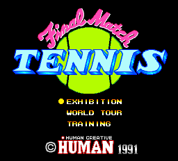 Final Match Tennis est un des jeux de tennis rétro qui a le mieux vieilli et surtout c’est probablement le meilleur sur la PC Engine. Le jeu est très simple à jouer et c’est ce qui le rend si plaisant. Plusieurs personnages sont bien sûr disponibles et il est possible de jouer à deux. Les coups principaux du tennis sont réalisables, lob, smash, coup droit, revers et sortent plutôt bien à condition d’être idéalement placé. Deux modes de jeu, exhibition et world tour, ce dernier étant le plus intéressant. Sans être aussi complet qu’un Jimmy Connors sur Super Nintendo, Final Match Tennis est une réussite dans son genre, à acheter par tous les possesseurs de PC Engine.