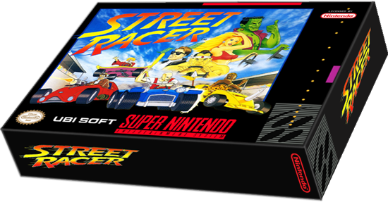Street Racer est un jeu qui est sorti après Mario Kart et qui en reprend un peu le principe de base. Toutefois je ne peux m’empêcher de trouver ce Street Racer bien en dessous de Mario Kart. Le jeu propose huit personnages avec chacun leurs caractéristiques et leurs coups spéciaux. En effet dans Street Racer ont peut cogner sur les autres participants. Plusieurs