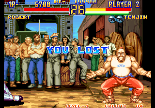 Art of Fighting est une série de jeux de baston 2D bien connu des fans de Neo Geo. Nous sommes devant le deuxième volet et deux changements importants font leurs apparitions. Déjà le nombre de personnages jouables dans le mode story est de 12 contre 2 dans le premier Art of Fighting. Ensuite graphiquement c’est plus beau que le premier volet, ce qui fait de Art of Fighting 2 un des plus beaux jeux de baston de l’époque. Seulement voilà, parfois cela ne suffit pas à faire un hit, la jouabilité et le plaisir de jeu ne doivent pas être mis de côté. Et c’est un peu l’impression que me donne ce Art of Fighting, c’est beau, la bande son et les bruitages sont magnifiques, c’est bien mis en scène, mais le plaisir de jeu n’est pas vraiment présent, en partie à cause d’une jouabilité un peu trop technique qui demande beaucoup d’entraînement. Un jeu à réserver aux fans de la série ou aux joueurs qui veulent prendre le temps de maîtriser la bête.
