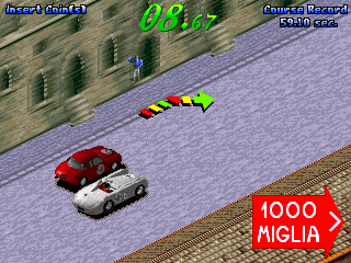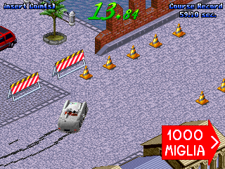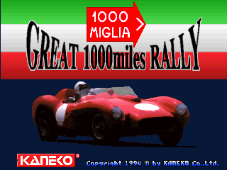 Great 1000 Miles Rally est un jeu de course édité par Kaneko en 1994 sur Arcade, il sera suivi en 1995 par un deuxième volet. Il s’agit d’un jeu d’Arcade pur, ici il n’y a pas de place pour la simulation. Le but est de finir les courses dans un temps limité. Le jeu est vu de dessus et la visibilité est très limitée, heureusement les virages vous sont annoncés par des flèches. Personnellement j’aime beaucoup ce jeu, l’animation est rapide les graphismes relativement fins pour l’époque et la prise en main et immédiate. De l’Arcade pure où il vous faudra apprendre les tracés par cœur pour réaliser les meilleurs temps.