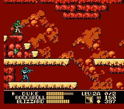 G.I.Joe est l’adaptation en jeu vidéo de la série animée, elle-même créée pour promouvoir une ligne de jouets bien connue des petites têtes blondes des années 80. Le jeu est sorti en 1991 sur Nes et sera suivi d’un deuxième volet. Vous devez diriger Duke le leader de l’équipe G.I.Joe et deux autres personnages sélectionnables parmi 4, un cinquième sera disponible pour la dernière mission. Ce qui nous fait 6 personnages en tout, un plus appréciable qui rajoute en durée de vie. Pour le reste il s’agit d’un jeu d’action comme il y en a beaucoup sur Nes. On peut sauter, tirer, cogner et même conduire des véhicules. G.I.Joe est un bon jeu d’action, avec des personnages aux caractéristiques différentes. Personnellement je ne suis pas fan du jeu surtout au niveau jouabilité et je vous conseille de l’essayer avant d’acheter.