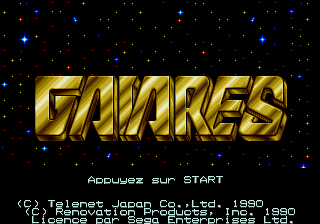 Gaiares fait partie des meilleurs shoot’em up de la Megadrive. Sorti en 1990 seulement au Japon il me semble (le soft est disponible en français sur émulateur), ce shoot’em up propose de vous mettre aux commandes d’un vaisseau disposant d’une arme révolutionnaire. Cette arme est en fait un petit satellite qui vole à vos côtés et qui, en plus de tirer, peut être lancé sur l’ennemi afin de se procurer son armement. L’introduction du jeu est superbement réalisée et très longue. La jouabilité est très simple, la vitesse du vaisseau est sélectionnable et les bonus se récupèrent grâce au satellite. Ce Gaiares est un magnifique shoot’em up, mais peut-être un peu dur.