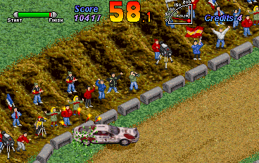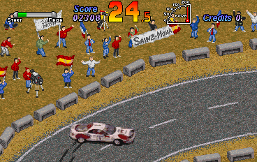 World Rally est un jeu de rally en 3D isométrique comme Great 1000 Miles Rally ou encore Neo Drift Out. Dans ce jeu une seule voiture est disponible, la Toyota Celica de Carlos Sainz, champion du monde de rally à l’époque. Graphiquement le jeu est plutôt réussi avec une voiture bien dessinée et des décors variés est bien détaillés. Les bruitages vous mettent bien dans l’ambiance et l’animation rapide rajoute encore un plus au jeu. Mais le point fort du jeu en plus de ceux cités plus haut c’est, pour moi, sa jouabilité. Le véhicule se prend en main après quelques secondes de jeu et le plaisir est immédiat. Personnellement j’adore ce jeu, c’est ce que je recherche dans un jeu d’arcade, facile à prendre en main, pas trop moche, plaisir de jeu immédiat et un bon petit challenge.