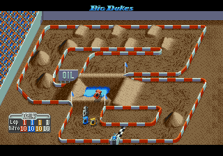 Super Off Road est un jeu de course vue du haut. Le circuit est entièrement visible et vous devez diriger votre voiture le long de celui-ci parmi quatre autres véhicules. La jouabilité est très simple, droite gauche, un bouton pour accélérer et un pour la nitro. Après chaque courses vous pouvez améliorer votre véhicule grâce à l’argent récoltée. Graphiquement c’est vraiment le minimum sur Megadrive, les véhicules sont assez petits et les décors simplistes, mais bon, la version Arcade originale était du même niveau. Super Off Road est un petit jeu de course sympa, facile à jouer qui gagnera en intérêt à plusieurs.