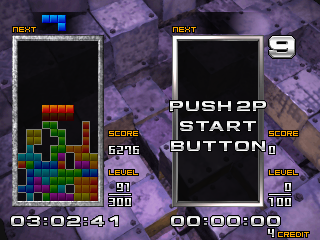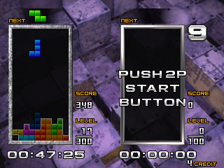 Je ne vais pas vous présenter Tetris, ce classique du jeu de réflexion. Cette version Arcade est un peu décevante car peu originale, mais le principal et là. Les briques tombent de plus en plus vite et le but du jeu est toujours de les empiler le plus proprement possible et d’enchaîner les lignes et les points. deux modes sont disponibles, normal et master ainsi qu’un mode deux joueurs en versus ou en coopération. Un Tetris relativement classique qui reste un jeu de réflexion des plus efficace.