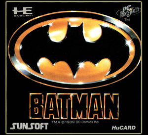 Batman sur PC Engine est l’adaptation du film du même nom en jeu vidéo. Le jeu est édité par Sunsoft comme la version Megdarive, mais ici pas de jeu vue de profil, nous sommes devant un jeu vue du haut avec un Batman qui se prend pour Pacman ou Bomberman. En effet le jeu se passe dans des niveaux styles labyrinthes avec des ennemis qui, dès qu’il vous touchent vous font perdre une vie. Heureusement notre héros chauve-souris dispose de ses batarangs et pourra ramasser des bonus qui l’aideront à combattre les vilains. Original avec sa vue du dessus, ce Batman sur PC Engine propose