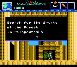 The battle of Olympus vous met dans le peau du jeune Morphée dont la petite amie Hélène est transformée en statue de pierre suite à la morsure d’un serpent. Bref ni une ni deux vous partez en direction des enfers pour sauver votre dulcinée, comme dirait mon pépé. Vous voilà donc sur la route, armé seulement de votre massue en bois pour l’instant. Le but est d’explorer les niveaux et de discuter avec tout le monde afin de récupérer des indications qui vous aideront dans votre progression. Le jeu ressemble beaucoup à Faxanadu dans sa présentation 2D style jeu de plate-forme. Graphiquement c’est plutôt bon, le personnage est bien réalisé et même si les personnages rencontrés ont souvent les mêmes têtes, le bestiaire ennemi est assez varié. Petit défaut du jeu, la jouabilité un peu frustrante et cette musique un peu répétitive. Sinon un bon petit jeu d’aventure plate-forme à l’aventure riche et difficile.