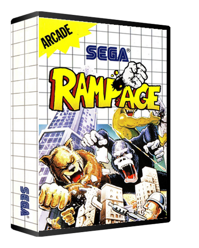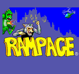 Rampage est un jeu assez original dans son concept, vous dirigez des monstres style Godzilla et vous devez détruire la ville et bouffer tout ce qui bouge. Vous avez la possibilité de diriger trois monstres qui sont en fait des humains mutants, un gorille, un espèce de gros lézard et un loup-garou. Vous pouvez marcher, sauter, escalader les immeubles et bien sûr mettre des coups de poing ou attraper les civils. Lorsque vous avez détruits tous les bâtiments, le niveau est fini. Rampage est un bon défouloir et la possibilité de jouer à deux est un plus, mais on n’y joue pas pendant longtemps.