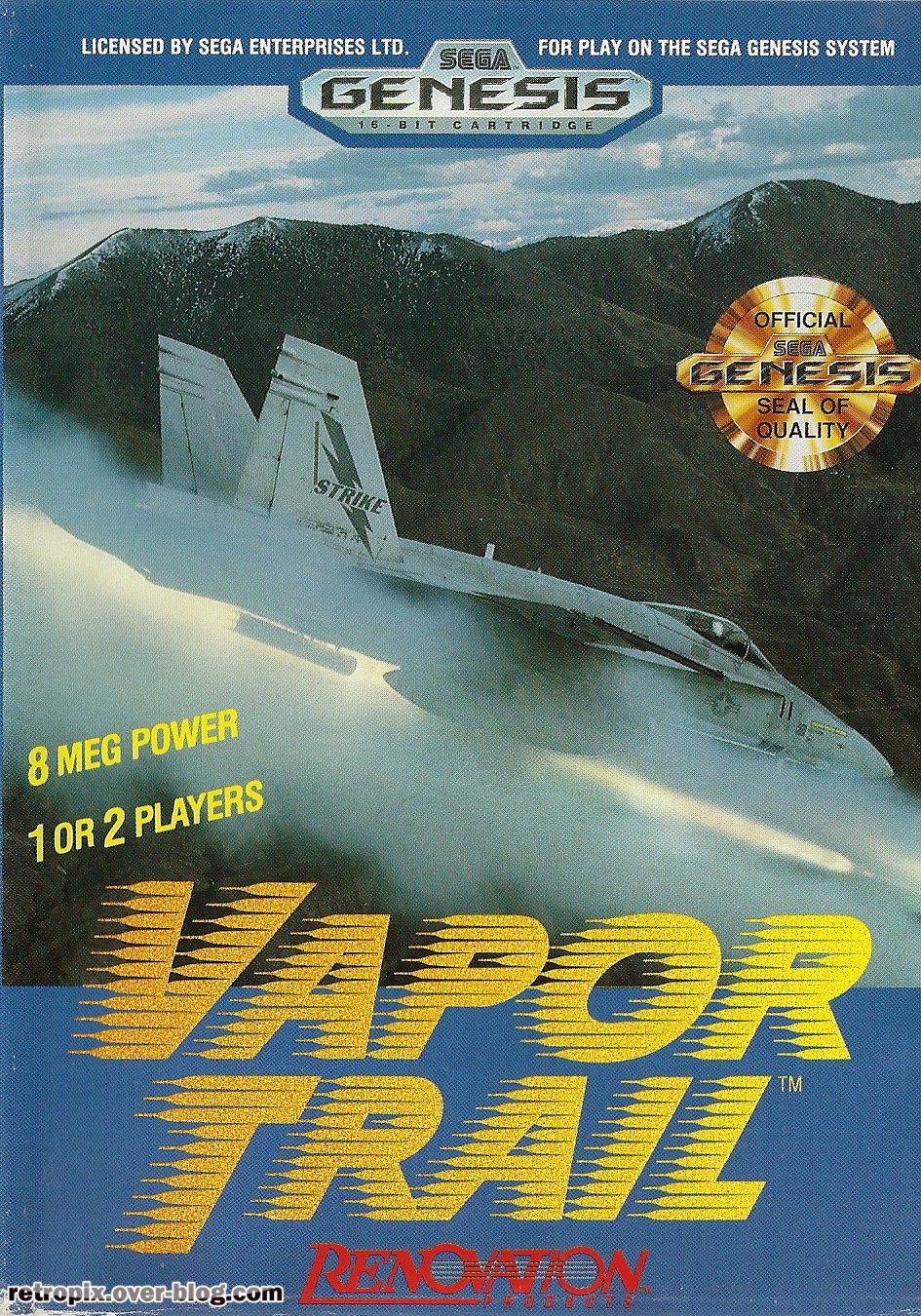 Vapor Trail est un des premiers shoot’em up sorti sur Megadrive. Il est sûr que ce n’est pas le meilleur shoot de la Megadrive, mais si on prend en compte sa date de sortie on peut le considérer comme un bon shoot’em up. Trois avions sont disponibles, le système d’armement est assez classique, la jouabilité correcte. Votre avion n’explose pas dès que vous êtes touché, vous aurez droit à l’erreur. Graphiquement c’est assez inégal, les premiers niveaux sont moyens, mais le jeu s’améliore ensuite sans pouvoir rivaliser avec les prochains shoot’em up de la Megadrive.