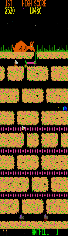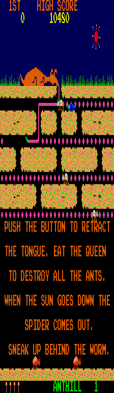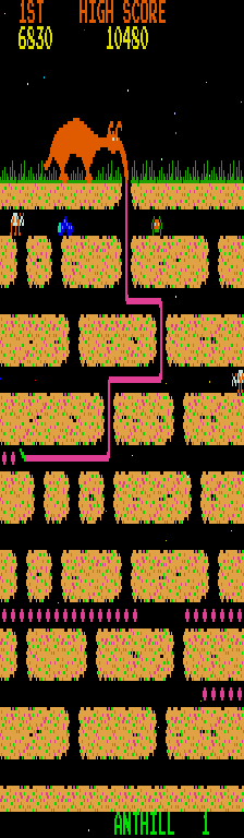 Anteater est un jeu de réflexion dans lequel vous dirigez, accrochez vous, la langue d’un fourmilier, Anteater en anglais. Alors oui, c’est étrange comme principe, mais Anteater fait partie de ces jeux originaux, anciens et addictifs, comme Donkey Kong, Q-bert ou encore Bagman. Les commandes sont simples, vous dirigez la langue du fourmilier et devez attraper les fourmis et autres insectes présents dans le terrier. Attention, vous devez trouver la bonne tactique, par exemple certains insectes devront-être attrapés par derrière. D’autres subtilités sont présentes dans le jeu, mais je vous conseille de les découvrir par vous-même en essayant ce jeu.
