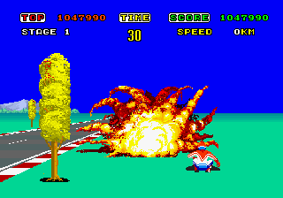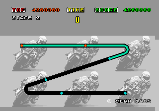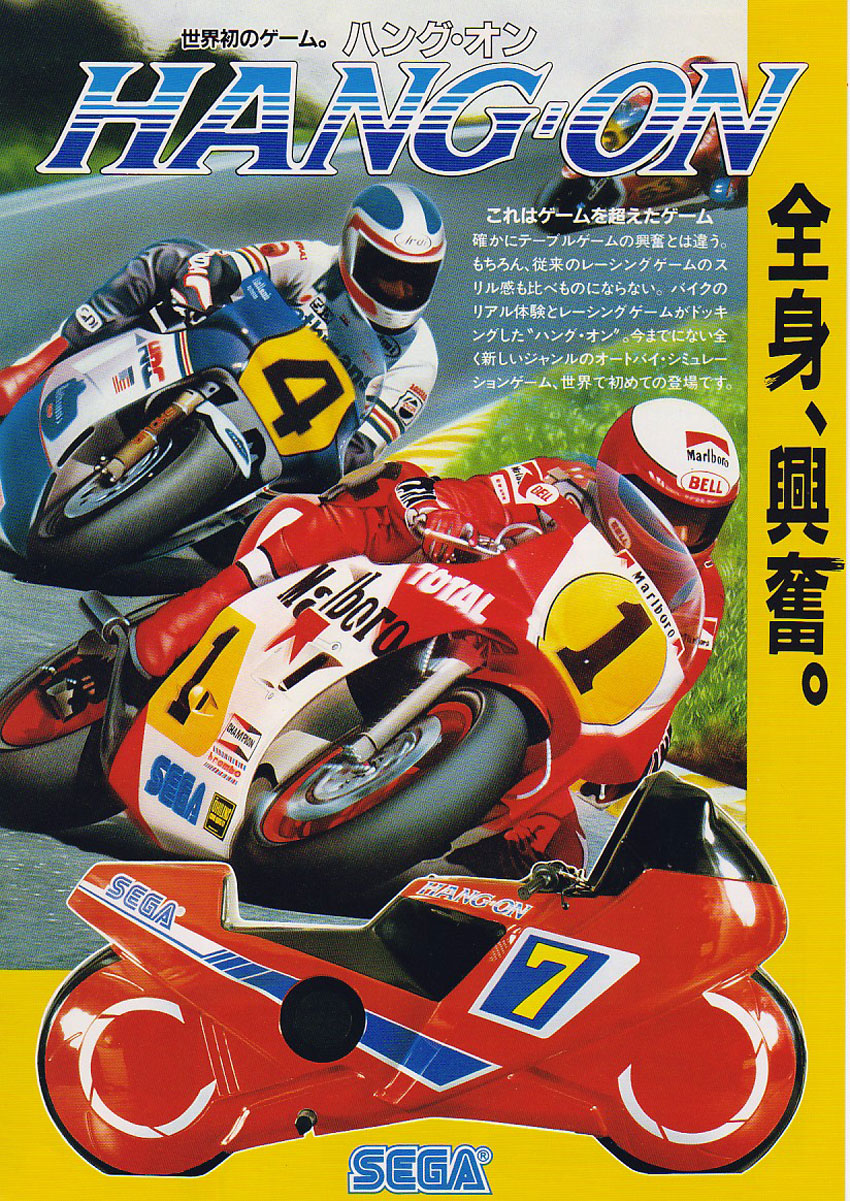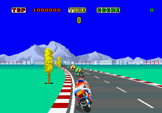 Hang On est un jeu aussi culte que Out Run, mais cette fois nous sommes en moto. Le jeu est développé par Sega est plus précisément par Mr Yu Suzuki, le futur papa de Shenmue. Le but du jeu est simple, enfin sur le papier, il suffit de finir les différentes parties du circuit dans le temps imparti. Aujourd’hui le jeu peut paraître simpliste, mais à l’époque c’est une révolution. La borne Arcade propose carrément un châssis de moto et graphiquement le jeu est bon. L’animation est très rapide et la maniabilité est plutôt bonne, même si le jeu est assez difficile, voire frustrant par moment. Hang On est un des classiques de l’Arcade à posséder ou au moins à essayer.