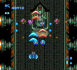 Un shoot’em up de plus sur PC Engine et encore un bon petit jeu. Gunhed est un des premiers grands shoot’em up de la console, les graphismes sont assez bons, c’est rapide, c’est jouable, bref du bon shoot. Le système d’armement est un peu compliqué et il vous faudra apprendre à repérer les bonus pour augmenter vos armes. Les bruitages et les musiques restent dans la norme de l’époque et la difficulté peut paraître faible dans les premiers niveaux. Que dire de plus, sinon que nous avons ici un bon shoot de plus sur la petite console de Nec. Petite précision, aux États-Unis le jeu s’appelle Blazing Lazers.