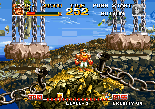Top Hunter est un jeu qui mélange plate-forme et action, voire run and gun. Vous dirigez Roddy ou Cathy, les deux personnages ayant les mêmes coups. L’originalité du jeu vient du fait de pouvoir se déplacer sur deux plans, un peu à la Fatal Fury. Le but est relativement simple, on avance, on tape sur les ennemis, on actionne quelques mécanismes et on combat un boss. Vos personnages se battent le plus souvent à mains nues, mais leurs bras sont extensibles et vous pouvez attraper les vilains pour les jeter sur d’autres vilains. C’est jouable, c’est beau, parfois un peu confus, mais on se défoule et on peut jouer à deux. Bref un jeu à essayer ou à acheter à un prix raisonnable, toujours.