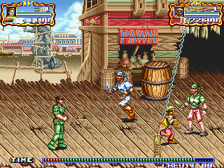 Vous connaissez le film Hook, sorti au cinéma et avec Robin Williams dans le rôle de Peter Pan, eh bien nous sommes devant son adaptation sur Arcade et franchement le jeu n’est pas trop mauvais. Quand je dis, pas trop mauvais, je parle pour l’époque évidement. Il s’agit d’un beat’em all qui vous permet de diriger cinq personnages dont le fameux Peter Pan. Au niveau de la réalisation, on est en dessous de certains jeux sortis la même année, mais cela reste assez coloré et l’ambiance est plutôt bonne. La jouabilité est des plus classiques pour le genre, un bouton pour sauter, un pour taper et un appui simultané pour une super attaque. C’est relativement rigide, mais le tout reste jouable et on peut interagir sur certains éléments du décors. En bref un bon petit beat’em all de plus à essayer.