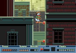 Après un Castle of Illusion plus que réussi, nous avons droit à un Quackshot, mettant en scène Donald, inoubliable. Vous dirigez Donald qui part à la recherche d’un trésor. On se retrouve donc avec un Donald aventurier qui ressemble fortement à Indiana Jones. Graphiquement le jeu est superbe, les décors fourmillent de petits clins d’œil aux dessins animés Disney et les seconds rôles sont nombreux: Dingo, les neveux de Donald, Géo trouvetou, Picsou… L’animation de Donald n’est pas aussi souple que celle de Mickey dans Castle of Illusion, mais c’est tout de même une réussite. Les musiques collent parfaitement à l’ambiance et la difficulté est bien dosée. Une fois de plus, nous avons un grand jeu sous licence Disney qui prouve que la console de Sega est la reine dans le domaine.