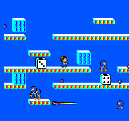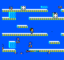 Teddy Boy est un des premiers jeux Master System. Vous dirigez le jeune Teddy et vous devez détruire les ennemis présents dans les niveaux. Les niveaux se présentent un peu comme les niveaux d’un Bubble Bobble, mais en plus ouverts. Les graphismes sont vides, les bruitages ne sont pas extraordinaires et le principe du jeu assez limité. En effet, on passe son temps à sauter et à tirer sur les ennemis. Bref Teddy Boy est un jeu qui a très mal vieilli et qui vous amusera une ou deux parties pas plus, à moins que vous soyez un fana du genre.