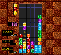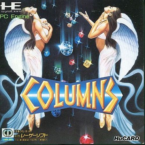 Columns est un puzzle game développé par Sega et adapté sur PC Engine qui reprend le principe de Tetris. Des colonnes composées de trois diamants de couleur tombent du plafond et vous devez les ranger de façon à aligner trois blocs de même couleur. Contrairement à Tetris, les colonnes ne peuvent pas tourner sur elles-mêmes et vous pouvez seulement intervertir les diamants entre eux. Comme souvent avec ce style de jeu, plus vous progressez et plus le jeu va vite. Le jeu manque cruellement de modes différents et si vous voulez vraiment vous amuser, je vous conseille de jouer à deux. Columns reste un des rares puzzle game de la console de Nec, alors si vous aimez le genre…