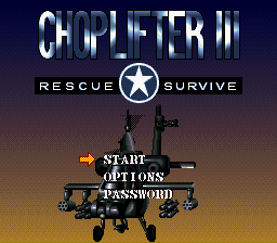 Pour ceux qui ne connaissent pas, Choplifter est un shoot’em up horizontal dans lequel vous devez récupérer des otages avec un hélicoptère. Choplifter est sorti sur beaucoup de plate-forme et cette version Super Nintendo est une des meilleures de l’époque. La réalisation, même si elle n’exploite pas toutes les capacités de la Super Nintendo, reste très correcte.