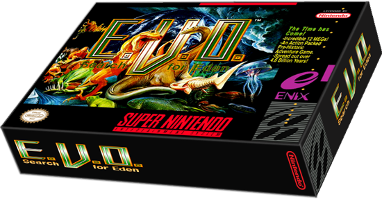 fuyant les plus forts. À chaque fois que vous bouffez une créature vous gagnez des points d’évolution qui vous permettront de faire évoluer des caractéristiques de votre corps. Graphiquement c’est assez pauvre surtout au niveau des décors. Les musiques et les bruitages ne cassent pas la baraque non plus. Reste une jouabilité des plus basique qui est quelque peu gênée par une réalisation assez faible pour la Super Nintendo. En résumé, je dirais que ce E.V.O est un jeu à essayer pour son concept original, mais de là à l’acheter…