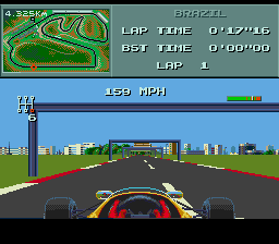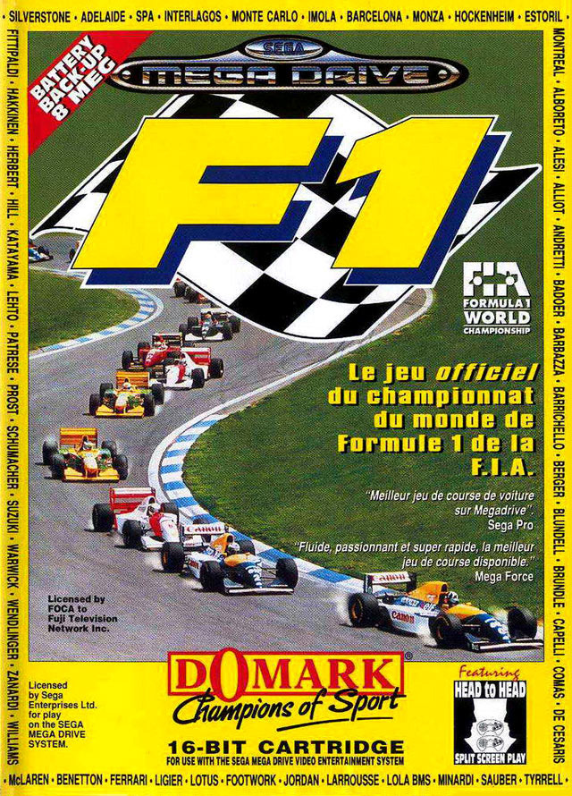 Meilleur jeu de F1 sur Megadrive, F1 est en fait une adaptation du jeu Vroom, bien connu des possesseurs d’ordinateurs Amiga et Atari ST de l’époque. C’est surtout au niveau de la réalisation du jeu que le niveau est élevé pour l’époque. On a une vraie impression de vitesse et un rendu qui ressemble beaucoup à de la 3D. Les circuits sont reconnaissables et nombreux, et surtout il ne sont pas plats. La jouabilité est bonne elle aussi et le jeu vous proposera un bon petit challenge. Bref ce jeu est le jeu ultime pour les fans de F1 sur Megadrive. Attention toutefois, il ne faut pas oublier que nous sommes aujourd’hui en 2016, donc soignez réalistes, le jeu a tout de même vieilli.