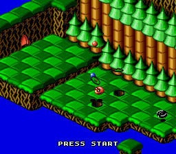 Snake Rattle’n’Roll vous met dans la peau d’un serpent ou deux si vous jouez à deux. Serpents qui doivent manger des boules de différentes couleurs afin de grossir et de pouvoir peser assez lourds pour franchir les niveaux. Les graphismes en 3D isométrique on du charme et un certain style, mais il rendent la jouabilité délicate. Les musiques ne sont pas inoubliables et les bruitages du même acabit. Snake Rattle’n’Roll est un jeu original au challenge intéressant, mais pour moi la jouabilité n’est pas à la hauteur, dommage.