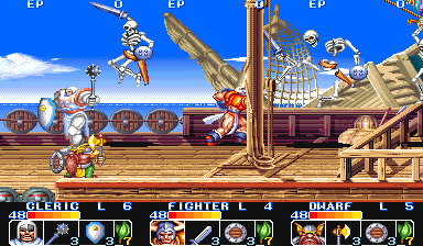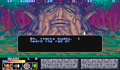 Aujourd’hui je teste… The King of… Fighters? Dragons!!! et BIM!!! vous êtes tombés dans le panneau, BAM. Enfin bref, on reste dans le BIM et BAM puisque The King of Dragons est un beat’em all dans lequel les coups d’épées, de haches, de pieds de poings et même les boules de feu et autres sorts magiques vont pleuvoir. Comme dans tous les beat’em all de Capcom sur Arcade, la réalisation est superbe pour l’époque avec des graphismes colorés, détaillés et des sprites énormes. La jouabilité est elle-aussi une réussite et d’une simplicité déconcertante. Rajoutez, une bonne mise en scène, une bande son toujours à la hauteur, la possibilité de jouer à quatre et vous obtenez encore un bon beat’em all sur Arcade. Alors oui, certains diront qu’on se contente d’avancer et de taper sur la tronche de tout ce qui bouge, mais moi j’adore 🙂