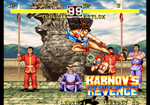 Karnov’s Revenge est un jeu de baston 2D de chez Data East qui prend son inspiration dans plusieurs hits de l’époque comme Street Fighter 2, Fatal Fury et autres… . On est loin des hits en question mais ce petit Karnov propose des graphismes plutôt sympas avec des belles couleurs et des décors travaillés pleins de clichés. Les personnages sont originaux, mais manquent un peu de charisme. La jouabilité se rapproche d’un Street Fighter 2, mais en moins technique et surtout l’animation des personnages est bien plus rigide dans ce Karnov. Un petit jeu que vous pouvez essayer si vous le trouvez à un bon prix sinon il y a évidement d’autres hits sur la reine des consoles.