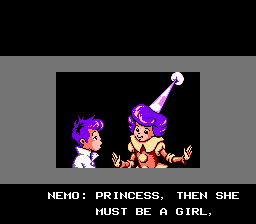 Little Nemo est au tout début un livre, ou plutôt une bande dessinée. Nous sommes devant son adaptation sur la petite console de Nintendo. Nemo est un jeune garçon qui voyage dans un monde imaginaire pendant qu’il dort et le roi de ce monde est kidnappé par un gros vilain, en gros c’est ça. Graphiquement le jeu est assez réussi malgré de nombreux clignotements. La jouabilité est assez riche étant donné que vous pouvez prendre la forme ou chevaucher les animaux rencontrés au cours des niveaux. Par exemple en taupe, vous pourrez creuser, en grenouille sauter… bref cela enrichit le gameplay. Les musiques et bruitages restent d’un bon niveau pour la Nes. En fait ce petit Nemo est un jeu sympathique qui sans être du niveau d’un Mario en terme de jouabilité reste agréable à jouer.