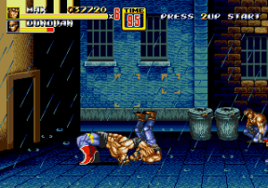 Streets of Rage, le meilleur beat’em all de Sega est de retour. Quatre personnages disponibles, Axel, Blaze, Max et Skate. Max est un gros balèze. Skate est le frère de Adam qui a été kidnappé dans ce volet et ce balade en rollers. Graphiquement, le jeu est plus réussi que son aîné, plus détaillé avec des personnages un peu plus gros et un scrolling moins linéaire. Niveau ambiance sonore on est toujours devant du très bon pour la Megadrive, même si j’ai toujours un faible pour les musiques du premier Streets of Rage. Concernant la jouabilité, les personnages disposent de plus de mouvements, mais le collègue avec la voiture et le bazooka a disparu. Personnellement, je trouve que les personnages sont moins équilibrés dans ce volet et je lui préfère le premier qui m’a beaucoup plus marqué. Mais bon, ce Streets of Rage 2 reste un des meilleurs jeux  du genre sur 16-bits.