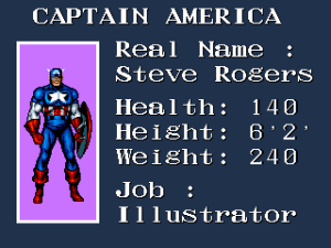 En cette période où les X-men, Batman, Superman, Wonder Woman et autres super héros sont à l’honneur, je vais vous parler d’un jeu mettant en scène Captain America et les Avengers. Plus précisément, vous pourrez diriger Captain America, Iron Man, Hawkeye (l’archer à ne pas confondre avec Green Arrow de DC Comics) et enfin Vision un héros un peu moins connu. Comme pour tous les beat’em all que je teste je ne suis pas du tout objectif étant donné que j’adore ce style de jeu. Mais ce jeu est une belle réussite, surtout pour un jeu de 1991. Les graphismes, malgré des personnages minuscules, proposent des sprites fidèles aux vieux comics et les décors sont assez variés. La jouabilité comme souvent dans ce style de jeu est assez limitée, mais en même temps, la prise en main est ultra rapide et on s’amuse de suite. La bande