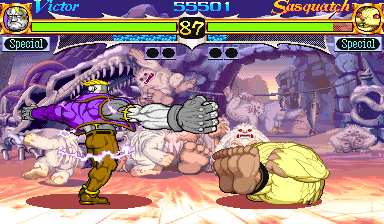 Night Warriors est, comme vous l’avez deviné, la suite de Darkstalkers, ce jeu de baston 2D de Capcom qui met en scène des monstres et autres personnages atypiques. 16 persos étaient disponibles dans le premier volet, ici on rajoute les deux boss ainsi que deux nouveaux personnages. Les combattants sont toujours aussi gros et leurs animations toujours aussi fun avec de nombreuses mimiques qui donnent des personnalités et un charisme bien particuliers à chacun. La jouabilité classique des jeux Capcom à six boutons, comme Street Fighter 2, est toujours aussi agréable et les coups sont impressionnants et originaux. La bande son et les bruitages sont dignes des jeux Capcom. Night Warriors est donc un superbe jeux de Baston 2D qui sans avoir l’aura d’un Street Fighter 2 reste tout de même bien plus original.