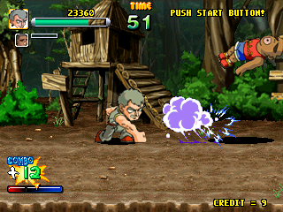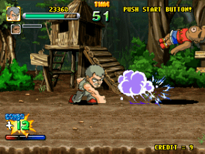 Vamf 1/2 est un beat’em all peu connu de l’Arcade qui met en scène des personnages style manga avec de grosses têtes. Je ne vous cache pas que je n’ai aucune idée du scénario et que je n’ai pas trouvé beaucoup d’éléments sur internet. Je peux quand même vous dire que le jeu dispose de graphismes colorés est détaillés qui sont proches du style manga parfois inspirés de Dragon Bal et qui donnent une superbe ambiance au jeu. Les sprites sont de bonne taille et les héros du jeu on chacun un style de combat et des coups spéciaux assez originaux. L’animation des personnages est bien réalisée et les coups de ces derniers sont variés. L’humour est omniprésent et la jouabilité ne surprendra pas les amateurs de beat’em all. Bref, je vous conseille d’essayer ce jeu qui vous étonnera sur plusieurs points.