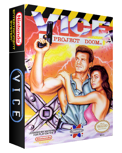 Vice: Project Doom est un jeu d’action qui ressemble par certains points à un Castlevania, un Power Blade ou encore un Ninja Gaiden, bref un jeu d’action. Le jeu est seulement sorti au Japon, mais avec un bon émulateur on peut se faire plaisir. Graphiquement le jeu est très bon pour la Nes, surtout les phases action plate-forme. Pour les phases de poursuite en voiture style shoot’em up c’est un peu en dessous. Côté jouabilité, classique et efficace, un bouton pour sauter, un pour tirer ou frapper et le bouton select pour changer d’arme. L’ambiance est plutôt futuriste et la mise en scène bien pensée. Encore un bon jeu d’action pour la Nes qui, je l’avoue, m’étonnera toujours çà ce niveau.