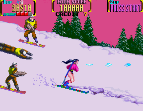 Mélange de Sunset Riders et de Shinobi, Mystic Warriors de Konami est un run and gun mettant en scène cinq héros qui ont une fâcheuse tendance à balancer de la shuriken à tout va. Le jeu propose des couleurs flashy un peu à la Sunset Riders avec des décors variés et riches en détails. L’animation est super rapide et la jouabilité d’une simplicité très efficace. Un bouton pour sauter, un pour tirer, une glissade pour éviter les tirs ennemis, bref c’est du hyper classique. La mise en scène est plus que correcte et les niveaux sont variés avec des passages en avion en wagon et même à ski. Alors oui tout cela paraît bourrin et un peu brouillon, mais si vous aimez le style et bien faites vous plaisir… tout simplement.