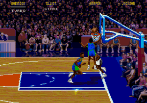 NBA Jam est un jeu que tous les amateurs de sport Arcade connaissent. Le jeu vous propose des matchs de basket en deux contre deux. Mais ici ce n’est pas NBA live et son côté simulation, ici c’est l’Arcade pure avec des feintes, des contres de folie et des dunks venus d’ailleurs. En effet les joueurs ont des capacités décuplées et il n’est pas rare de les voir s’envoler, faire des sauts dignes de plongeurs olympiques pour ensuite venir exploser le panier. La jouabilité est simple et efficace, les bruitages tonitruants et les voix digitalisés omniprésentes. Graphiquement le jeu est réussi, même si on est loin de la version Arcade. Un bon jeu de baskets orienté Arcade qui prend toute sa dimension à plusieurs.