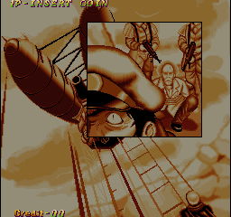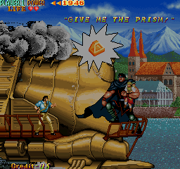 Edward Randy est un jeu d’action pouvant se jouer à deux. Vous dirigez Edward un jeune homme qui se retrouve à protéger une certaine Charlotte, fille d’un savant, recherchée par une horde de soldat. Bref, tout ceci n’est qu’une excuse pour se mettre sur la tronche. Votre perso dispose d’un fouet qui vous permettra de vous accrocher au décor en plus de claquer le cul des méchants. Par contre ce sera votre seule arme et vous n’aurez pas non plus de bonus. Ici on gagne de l’énergie en tapant du vilain. Graphiquement, les sprites sont énormes et bien dessinés, tout comme les véhicules qui sont d’ailleurs très nombreux. L’action se passe en vue de côté et souvent sur un de ces fameux véhicule, du coup le jeu propose des décors avec des scrollings dans tous les sens. Voiture, avion, bateau… impressionnant, mais par contre la lisibilité de l’action et la
