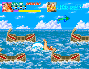 des projections. Voir Astérix attraper les romains pour leur mettre des paires de claques ou Obélix les envoyer valdinguer de droite à gauche et tout simplement jouissif. Au niveau de la jouabilité c’est du beat’em all classique, deux boutons seulement, mais en combinant un peu avec le joystick vous avez plusieurs possibilités. Les bruitages et les musiques ne gâchent en rien le plaisir de jeu. Seule ombre au tableau, des petits problèmes de profondeur qui rendent certains passages un peu ardus. Konami a réussi un tour de force incroyable là ou tant d’autres ont échoué. Je le dis et je le répète, Ce jeu est une bombe par TOUTATIS!!!