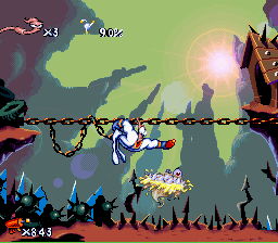 Earthworm Jim, le célèbre ver de terre, non content de faire un tabac sur Megadrive, arrive sur Super Nintendo et franchement, c’est du tout bon. Sachez tout de même que la version Megadrive dispose d’un niveau de plus, mais bon cette version Super Nintendo dispose de graphismes un peu plus léchés. Sinon que dire de plus, c’est beau, c’est jouable, c’est marrant, c’est bien animé, bref c’est génial. Foncez!!!