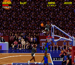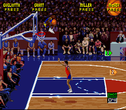 NBA Jam est un jeu que tous les amateurs de sport Arcade connaissent. Le jeu vous propose des matchs de basket en deux contre deux. Mais ici ce n’est pas NBA live et son côté simulation, ici c’est l’Arcade pure avec des feintes, des contres de folie et des dunks venus d’ailleurs. En effet les joueurs ont des capacités décuplées et il n’est pas rare de les voir s’envoler, faire des sauts dignes de plongeurs olympiques pour ensuite venir exploser le panier. La jouabilité est simple et efficace, les bruitages tonitruants et les voix digitalisés omniprésentes. Graphiquement le jeu est réussi, même si on est loin de la version Arcade. Un bon jeu de baskets orienté Arcade qui prend toute sa dimension à plusieurs.