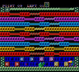 Cette version de Batman réalisée par Sunsoft n’a rien à voir avec les autres adaptations de l’époque. Ici pas de jeu vu de profil, mais plutôt vu de dessus. Mélange entre un Bomberman et un Pac-Man… original.