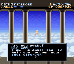 ce qui est de la partie gestion, vous dirigez un petit ange style Cupidon, armé d’un arc et devez empêcher des monstres volants de kidnapper vos villageois et détruire votre ville. Le but et de faire progresser votre ville et ses routes vers les nids des ennemis afin de les détruire. Tout ceci vous sera bien sûr mieux expliqué dans la notice du jeu. ActRaiser est un jeu intéressant, un peu déroutant puisqu’il mélange deux genres différents, mais sachez qu’un mode vous permet de jouer seulement la partie action plate-forme, la plus intéressante à mon avis. Doté d’une réalisation à la hauteur, ActRaiser est un bon jeu, mais pour moi ce n’est ni un très bon jeu de gestion, ni un très bon jeu de plate-forme action. J’aurais préféré qu’il choisisse son camp.
